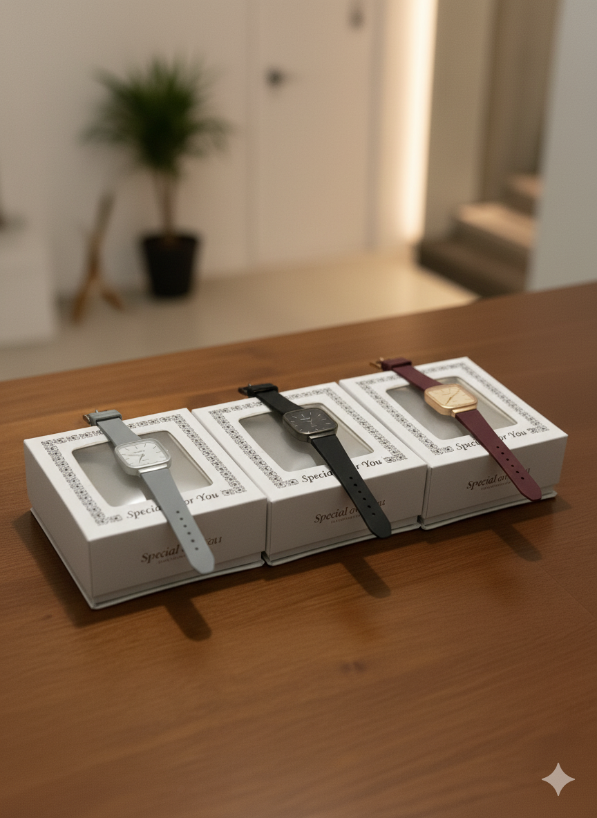 Each timepiece features a lightweight yet durable square case for day-long comfort and bold aesthetics. With scratch-resistant sapphire glass and high-precision quartz movement, these watches combine durability, accuracy, and timeless elegance in one complete set.